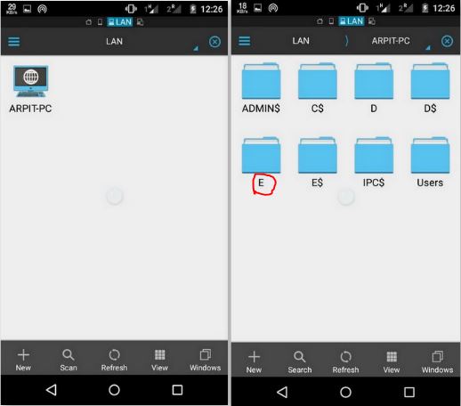 Step 3: Now perform a scan and you will see  your PC if it’s connected to the same network. Now enter the username and password of your PC.  There you will see the shared folder.Â