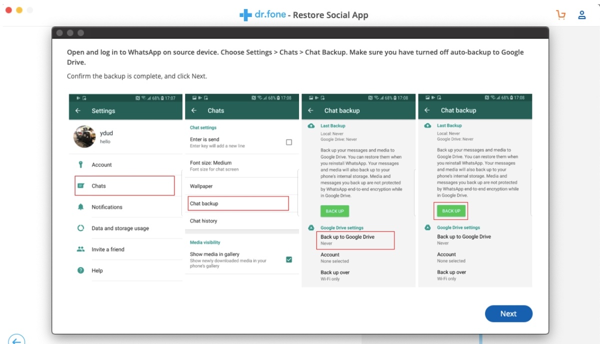 You can also look at this official dr. fone guide while restoring WhatsApp on your new smartphone. Now one thing you should know before transferring Whatsapp chats from Android to iPhone is that Whatsaap doesn’t recommend this method. Hence, you can use it at your own risk.
