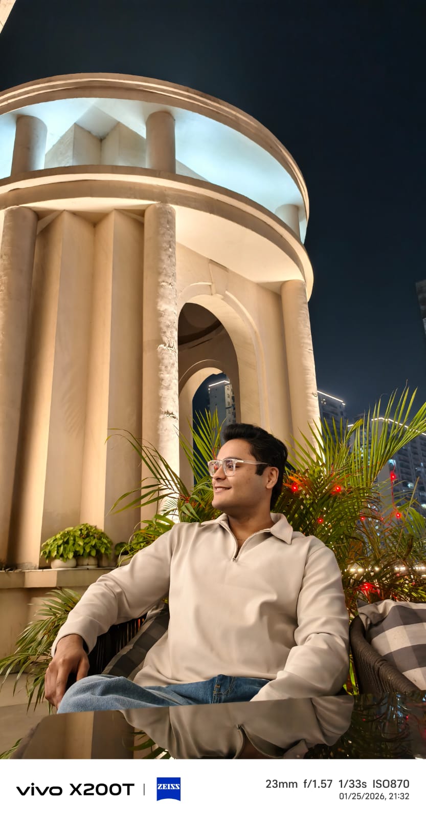 Moving on to nighttime, the praises continue, as the X200T’s photos are crisp, well-lit, and colorful, with the Sony primary sensor handling light perfectly. I also really like that vivo has tuned the color science so it looks the same across all three lenses. Videos from all four lenses can be captured at 4K@60 fps, and the results are really decent. I filmed my birthday video with the X200T in an artificially lit environment, and the results had spot-on skin colors, ample sharpness, and HDR. I’m not a big selfie guy, but the limited shots I did take were aesthetic, too.